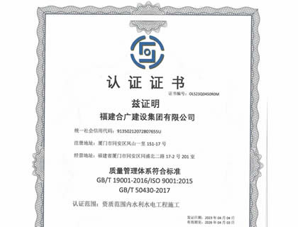 福建合廣建設集團有限公司,注冊資本5188萬元人民幣,公司位于廈門市同安區鳳山一里151-17號。本公司成立于2013年,公司具備市政公用工程、水利水電工程、房屋建筑工程、公路工程、園林綠化等多專業施工資質。企業從業人員100多人,各類專業技術人員70多人,其中高級職稱8人,中級職稱40多人,一級建造師6人,二級建造師15多人。